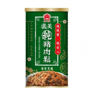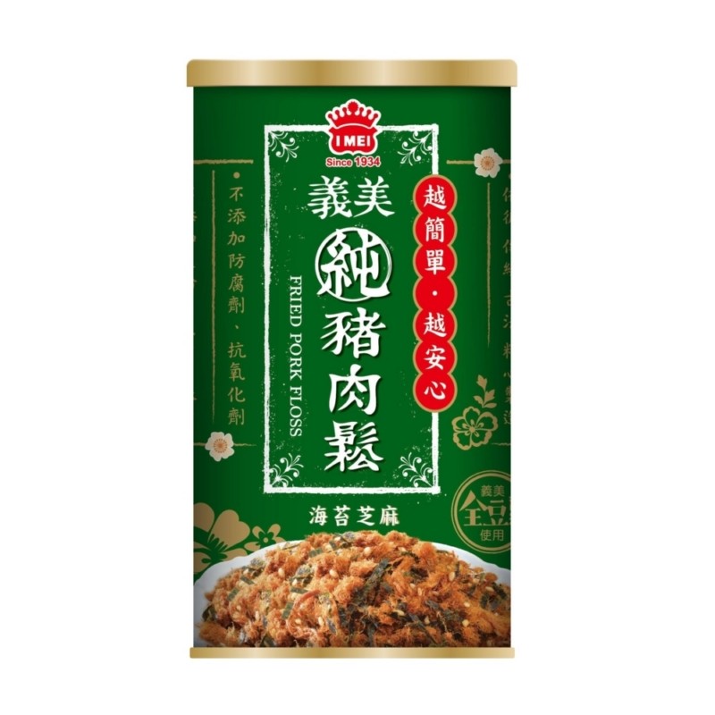 ★義美純豬肉鬆使用嚴選的新鮮豬肉、及義美全豆純釀造醬油,依循傳統古法 精心製造,並灑上芝麻及海苔增加風味層次,用單純的原料呈現純豬肉鬆的 醇厚風味。