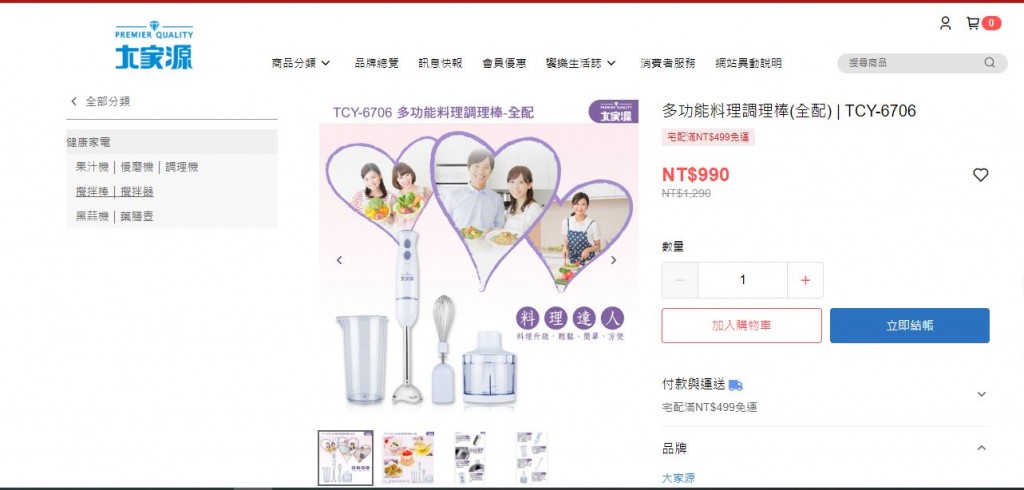 【校友會商城】-【多功能料理調理棒(全配) | TCY-6706-積分+現金只要205元】 舉報中心 舉報該商品 可獲得 10 點商城積分 市 價: 1290 元 價 格: 現金 990元 積分+現金 100 積分+ 890元 運 費: 超商:60.00元 / 宅配:100.00元 滿599.00免運費 loading..... 評 價: 5分 0條評論 商品類型: 全新 190 次瀏覽 購買數量: - + (當前庫存23件 ) 成功添加到購物車 關閉 購物車共有 種商品 總金額為: 商城特賣店 校友會商城 發站內信 好評率:100% 動態評價 描述相符: 5分 服務態度: 5分 發貨速度: 5分 店舖信息 創店時間: 2024-06-18 所 在 地: 台灣省 台南市 商品數量: 6435件商品 店舖收藏: 25人收藏 認證信息: 實名認證 實體店舖認證 聯繫方式 地圖加載中... 收藏商品 分享到FB 分享到Line 複製鏈接 https://www.lineshop.tw/index.php?act=goods&goods_id=60785 商品詳情 商品評論 銷售記錄 產品諮詢 商品評論 寶貝與描述相符 5分 5 非常不滿 不滿意 一般 滿意 非常滿意 店舖評價 銷售記錄 原價990元 購買的價格不同可能是由於店舖往期促銷活動引起的,詳情可以諮詢賣家 產品諮詢 推薦商品 【校友會商城】-【如意紅毛苔香鬆250g-積分+現金只要104元】 價格:NT$109 【校友會商城】-【P20030 滋養澆水器積分+現金只要64元】 價格:NT$69 【校友會商城】-【1尺4吋歐式花盆積分+現金只要106元】 價格:NT$111 【校友會商城】-【932043 1尺2歐式花盆-紅積分+現金只要76元】 價格:NT$81