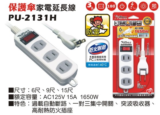 【校友會商城】-【PU2131H 15A6尺保護傘延長線附突積分+現金只要147元】