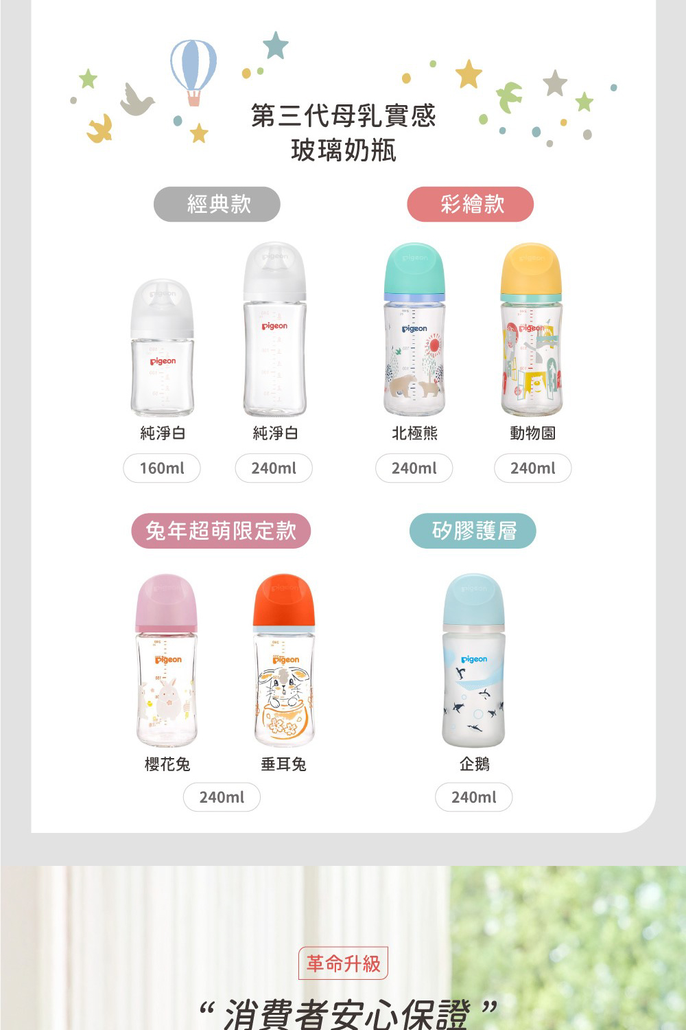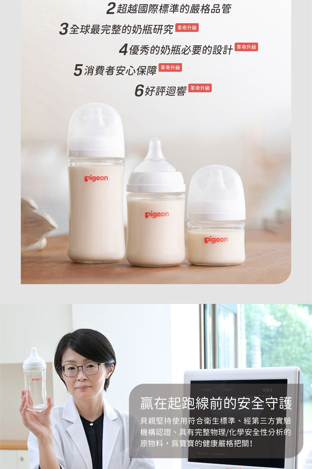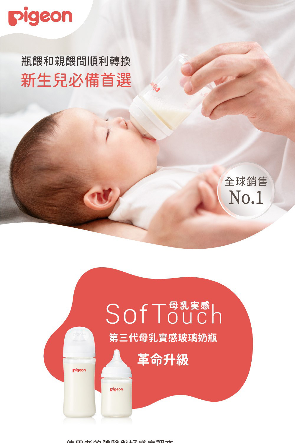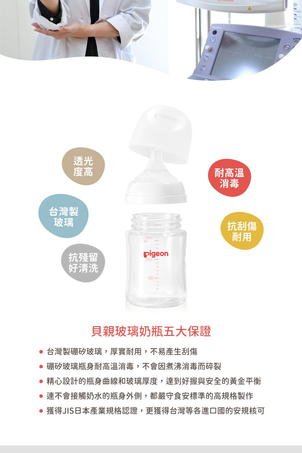 【Pigeon貝親 】第三代母乳實感玻璃奶瓶160ml/純淨白